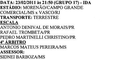 CBF escala trio paranaense para Comercial-MS x Vasco