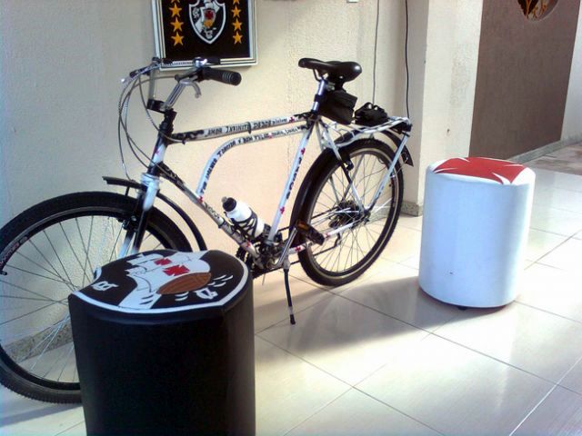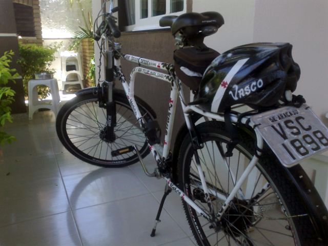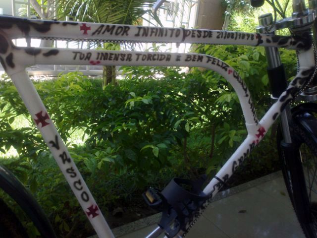 Nesse contexto é que lembrar o dia 07/04/1924 - quando o nosso então Presidente José Augusto Prestes manifestou repúdio a atitudes e gestos preconceituosos contra os negros e operários do nosso time praticados pelos rivais cariocas - representa, por certo, um capítulo da história do futebol que não somente nos causa orgulho como justifica e impulsiona gestos apaixonados como o verificado na vida desse devotado vascaíno sergipano, Marcos Bispo que, a par de suas tarefas profissionais de Procurador Federal/Advogado, dedica grande parte do tempo para criar e colecionar lembranças e objetos que ajudem a ilustrar e homenagear a paixão por essa bandeira. A primeira de suas "loucuras" que ora se destaca é essa bicicleta do ano de 1964 que mesmo conservando parte de sua originalidade acabou sendo totalmente personalizada com a arte do grafite, por símbolos e trechos do hino de nosso clube.