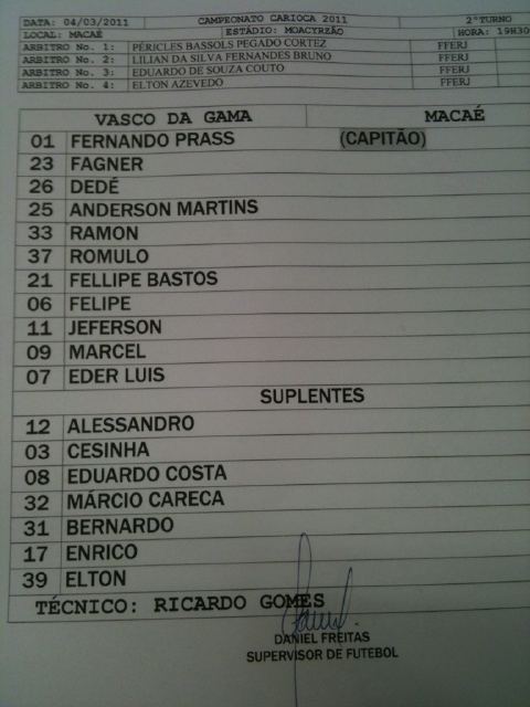 Confira escalação oficial do Vasco para o jogo contra o Macaé