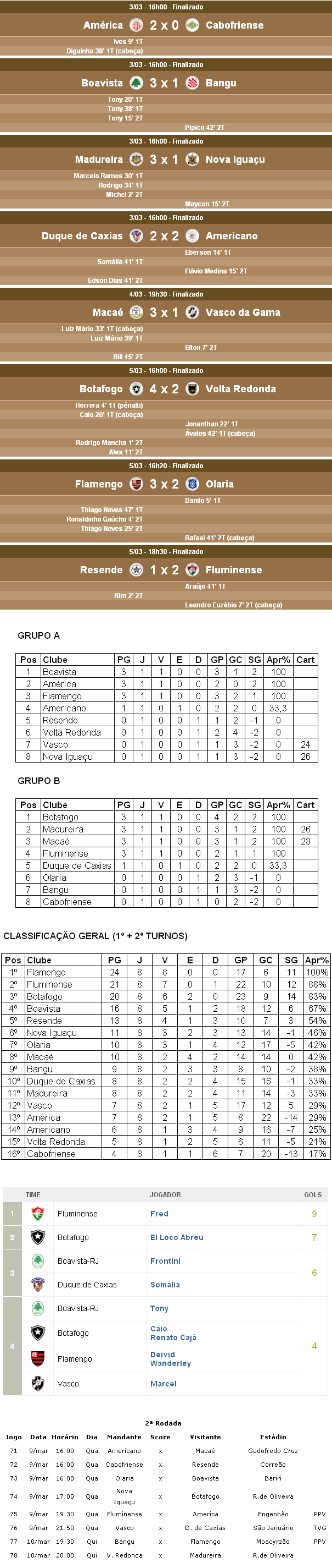 Fonte: Futebol Interior (resultados, autores dos gols), NETVASCO (texto, classificação e classificação geral), UOL (artilharia), Site da FFERJ (próxima rodada)