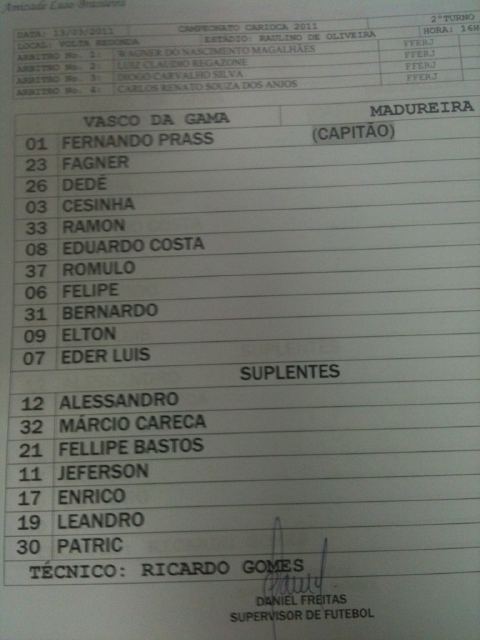 Confira a escalação oficial do Vasco para o jogo contra o Madureira