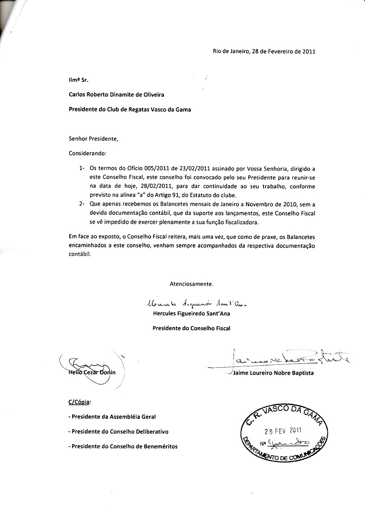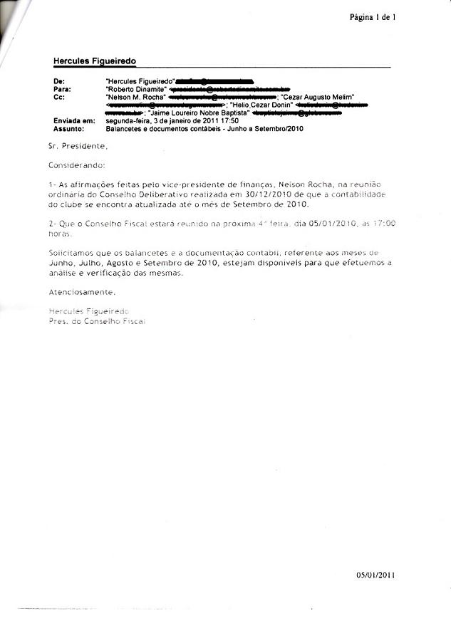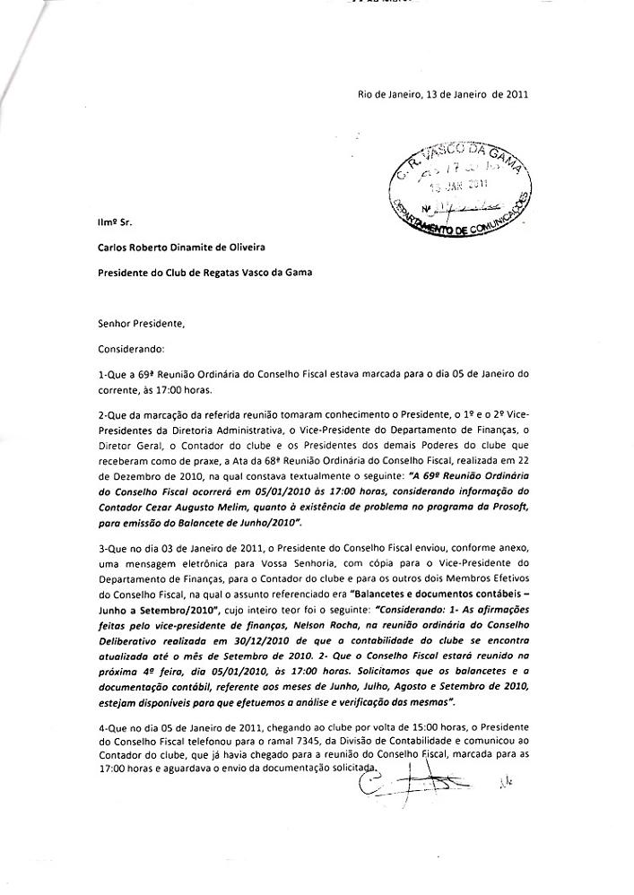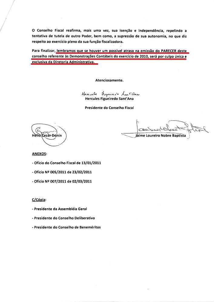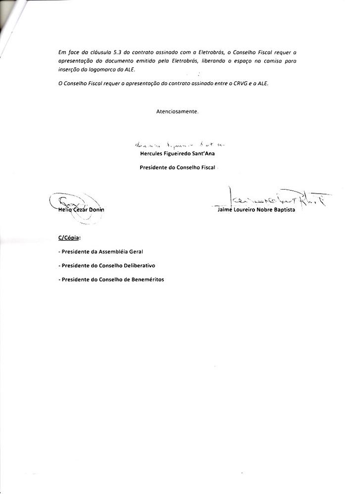 Nota e documentos publicados pelo site do grupo de oposição Casaca: