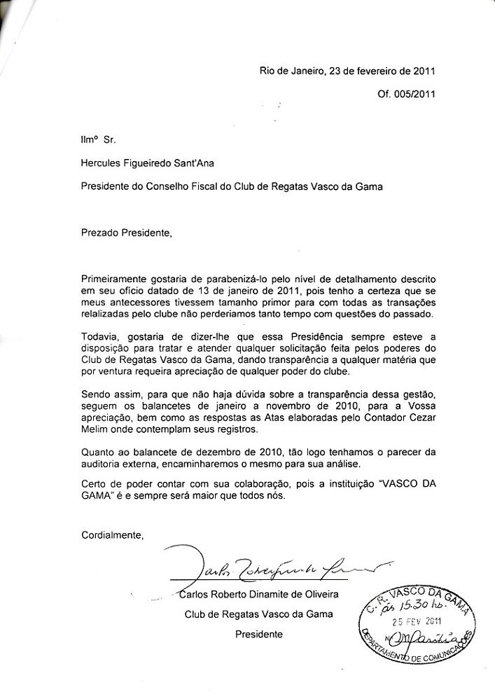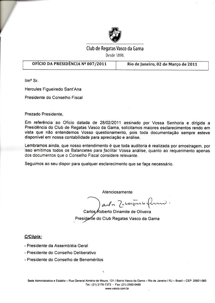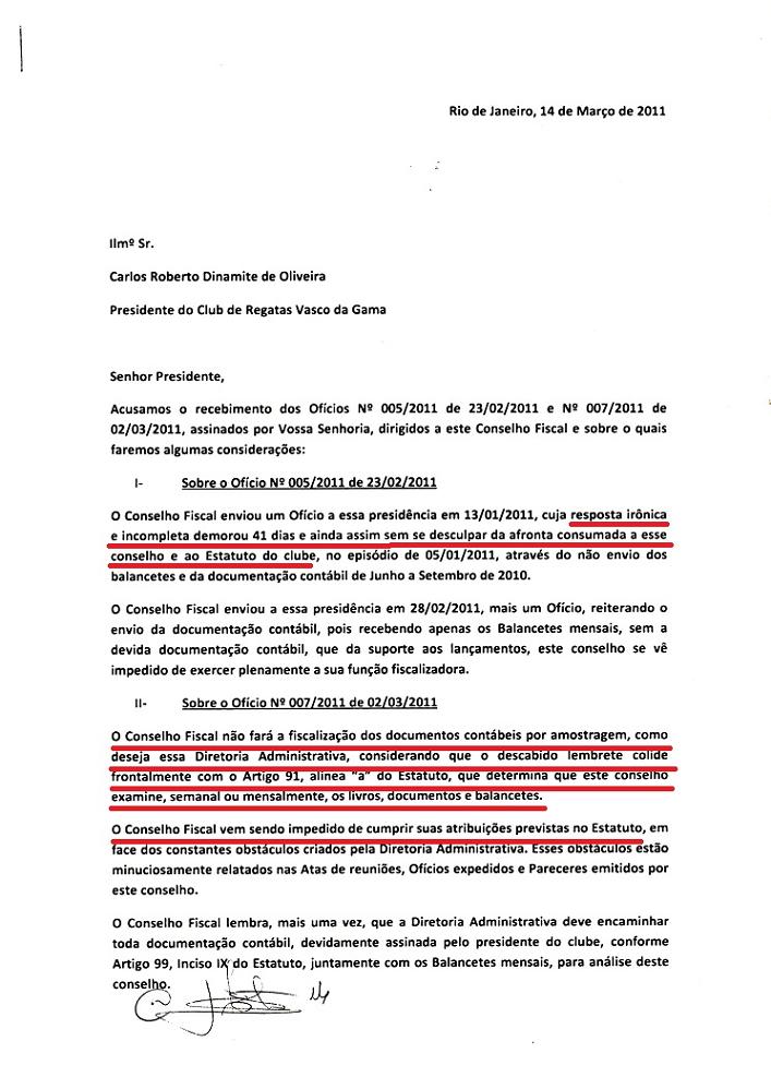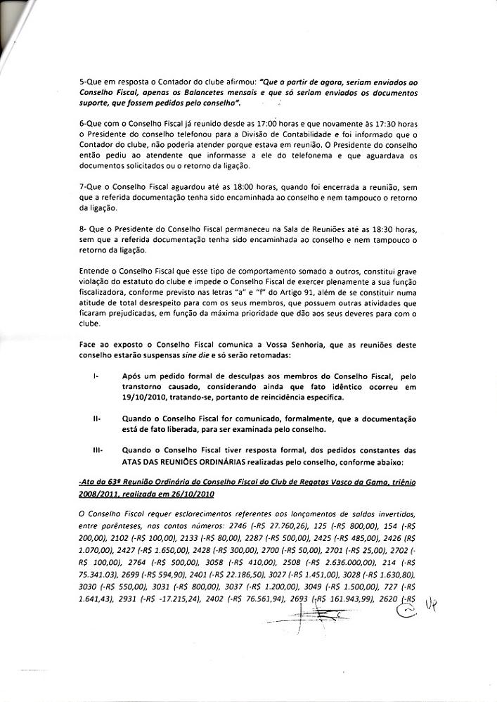 Nota e documentos publicados pelo site do grupo de oposição Casaca: