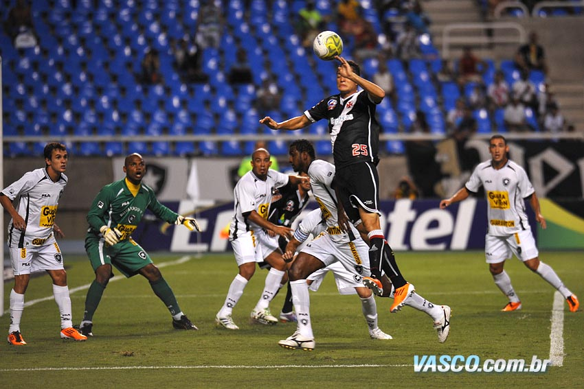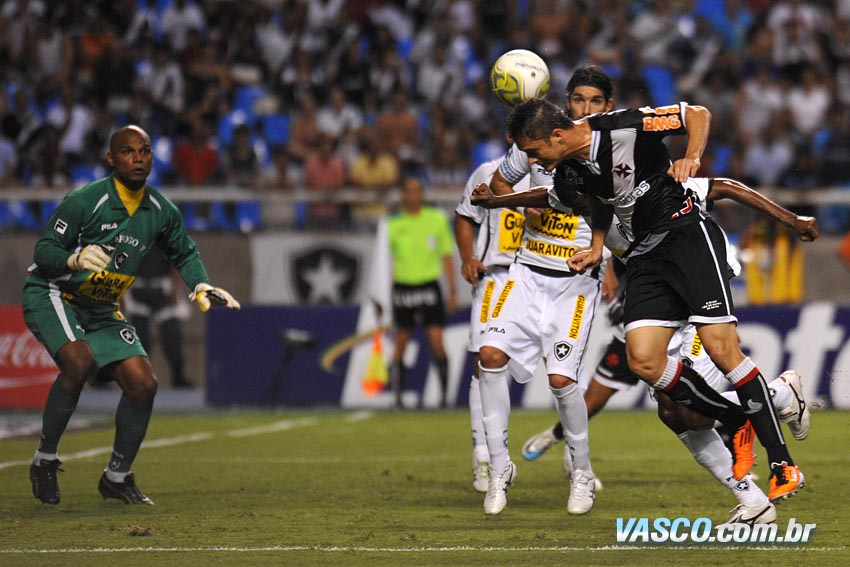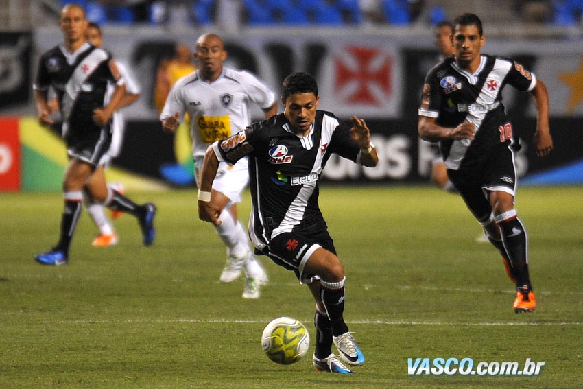 O primeiro tempo mostrou uma superioridade vascaína traduzida de cara pela postura tática da equipe desde o início. Não que o Botafogo não tenha assustado. Mas Ricardo Gomes deixou claro que manteria o esquema ofensivo que vem dando certo nos últimos jogos. E o torcedor que foi ao Engenhão não teve motivos para reclamar: viu bonitos lances. E o goleiro Jefferson inspirado, ainda que tenha falhado em duas saídas de gol.