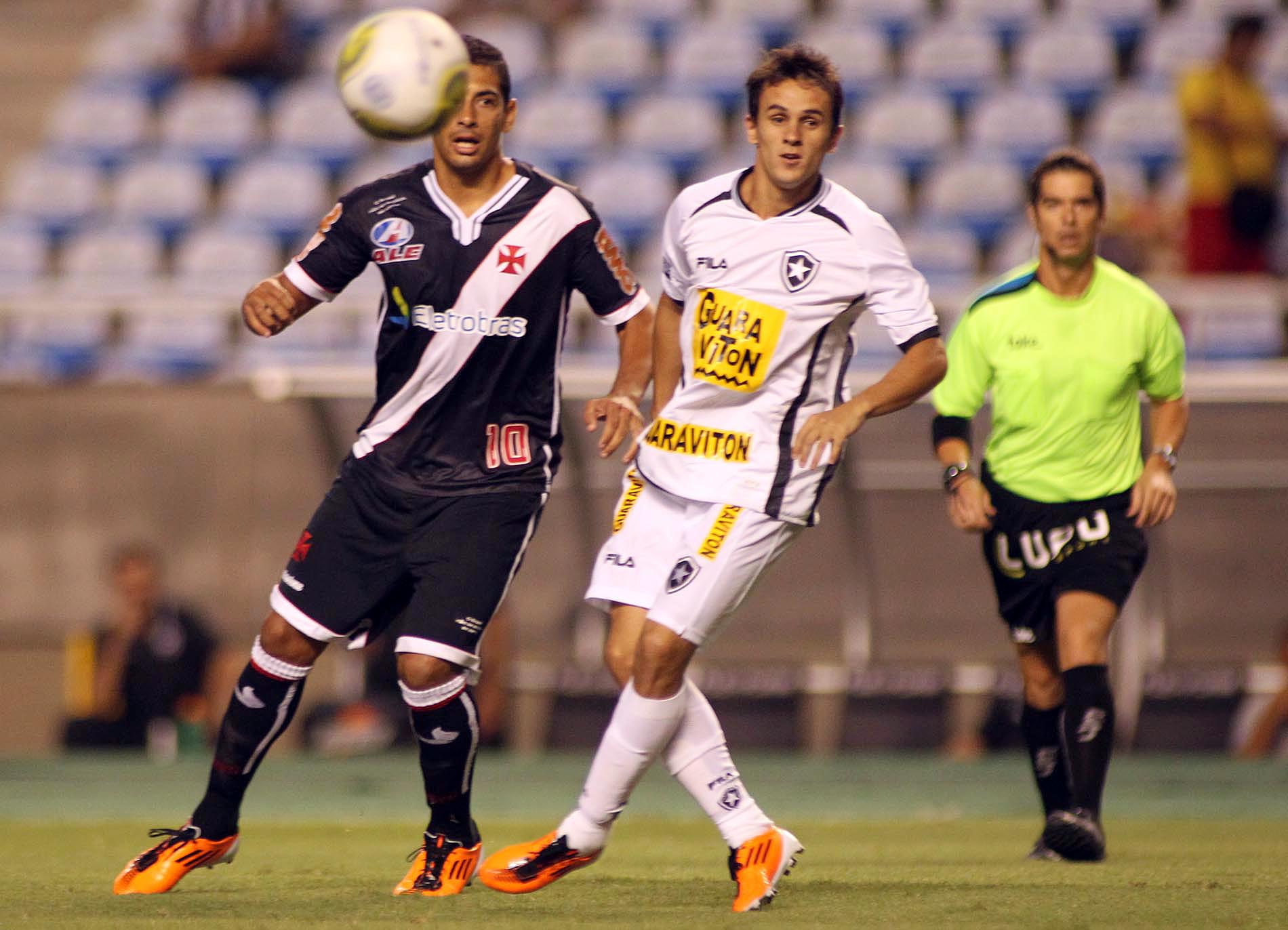 Com o estreante Diego Souza mostrando mais vontade do que a costumeira técnica, o Vasco dava as cartas nos primeiros dez minutos. O Botafogo vinha com a costumeira tática da prancheta de Joel: time compactado, marcando bem, à espera da hora certa de dar o bote. Por pouco Arévalo conseguiu aos 11, ao matar e bater de fora da área um rebote de Dedé. A bola raspou a meta de Fernando Prass, que se esticou, mas não chegaria na bola. O lance de perigo deu um gás a mais à equipe. Outro bom lance agitou a torcida alvinegra: Herrera recuou para dar um toque por cima para Loco Abreu. O uruguaio pegou como a bola veio, de prima, mas bateu por cima.