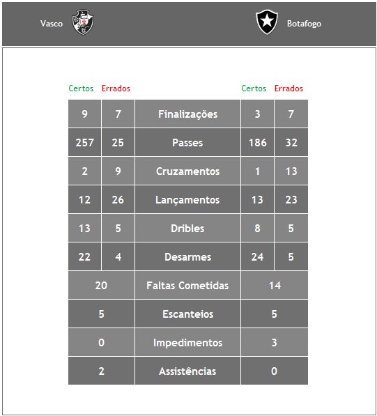 ![]() Estatísticas de Vasco 2x0 Botafogo | ![]() Estatísticas de Vasco 2x0 Botafogo | ![]() Estatísticas de Vasco 2x0 Botafogo |