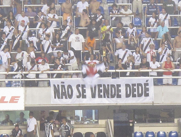 A campanha que se iniciou na internet chegou às arquibancadas. No clássico entre Vasco e Botafogo no último domingo, uma faixa com os dizeres 'Não se vende Dedé' foi pendurada no Engenhão. É mais um passo da iniciativa criada por torcedores no Twitter que tem como principal objetivo sensibilizar a diretoria vascaína para evitar a negociação do zagueiro com o futebol europeu no meio do ano. O perfil (twitter.com/naosevendedede) já conta com mais de três mil seguidores.