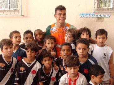 Enquanto a partida dos vascaínos do futsal em São Januário pelo Campeonato Carioca não começava, a garotada aproveitou para tietar o elenco profissional do Vasco.