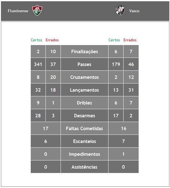 ![]() Estatísticas de Fluminense 0x0 Vasco | ![]() Estatísticas de Fluminense 0x0 Vasco | ![]() Estatísticas de Fluminense 0x0 Vasco |