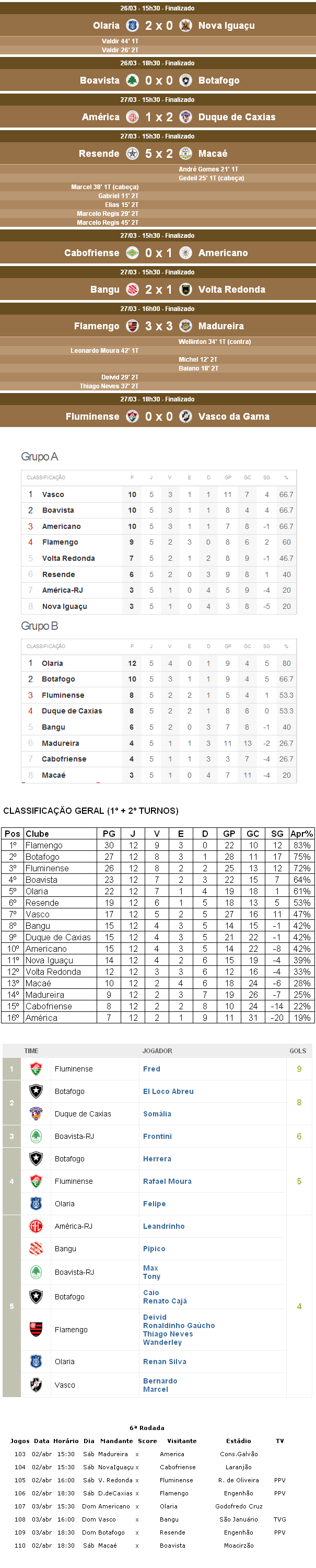 Fonte: NETVASCO (texto, classificação geral), Futebol Interior (resultados, autores dos gols), GloboEsporte.com (classificação), UOL (artilharia), Site da FFERJ (próxima rodada)