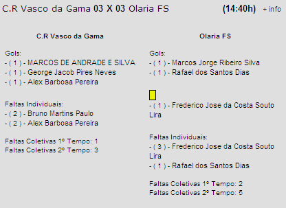 Quando já nos aproximávamos do fim do jogo, Dabá conseguiu empatar o confronto dando números finais à disputa, Olaria AC 3 x 3 Vasco da Gama.