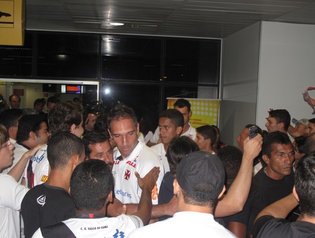 Depois de cerca de uma hora de atraso do horário previsto, a delegação do Vasco chegou a Natal no fim da noite desta segunda-feira. A espera não desanimou os cerca de 250 torcedores que esperaram os jogadores no saguão do aeroporto. O mais festejado foi o zagueiro Dedé, seguido do mais novo camisa 10 da Colina, Diego Souza.