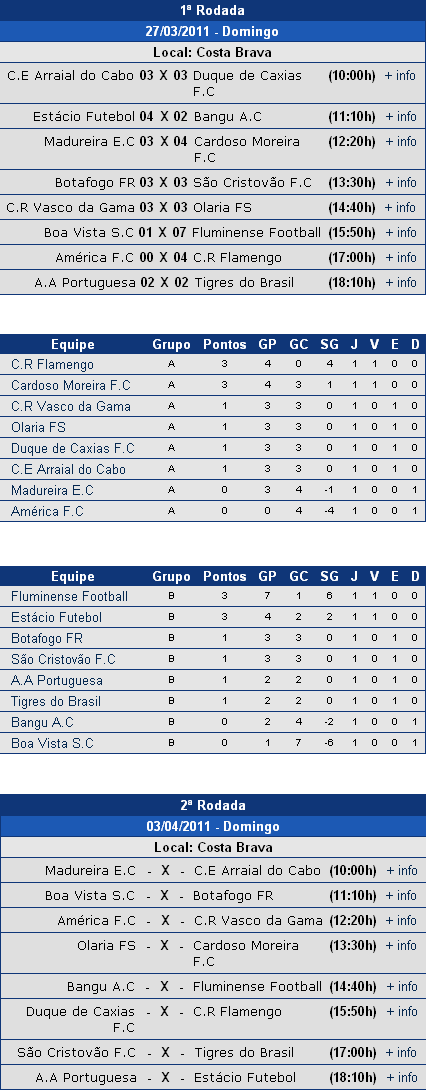 Pela 2ª rodada do Campeonato Carioca de Futebol Society (Futebol de 7), o Vasco, líder do ranking brasileiro da modalidade, tenta se recuperar do empate da estreia contra o Olaria (3 a 3) enfrentando o América neste domingo (03/04), às 12h20min no clube Costa Brava, no bairro do Joá.
