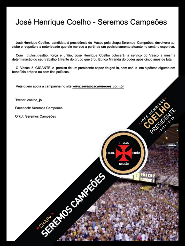 José Henrique Coelho divulga endereços de sua candidatura na internet