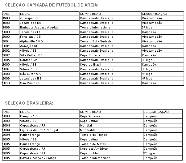 É uma honra poder contar com a competência do Índio à frente do Vasco da Gama, um treinador espetacular, um dos melhores que tive em todos os anos de Seleção Brasileira, o único treinador que não perdeu um jogo no tempo normal à frente da Seleção Brasileira (derrota apenas nos penaltys para Portugal em 2005), que possui um vasto currículo (abaixo) e que, recentemente, em novembro do ano passado, conquistou o título do Campeonato Brasileiro de Seleções Estaduais pelo Espírito Santo, derrotando Rio de Janeiro e São Paulo, mais um título para a sua grande galeria! A escolha do Índio se deu em razão de entender ser o melhor nome para a nossa equipe no momento, um treinador que conhece todos os nossos principais jogadores, Jorginho, Bruno Xavier e Rafinha, já tendo trabalhado com os mesmos anteriormente, sabe como poucos ensinar aos mais jovens a melhor prática do beach soccer competitivo (muito importante para o projeto que temos de formar novos jogadores, trabalhando os jovens) e acima de tudo por possuir uma carreira muito vitoriosa! Se destacou no início dos anos 2000 à frente da Seleção Estadual do Espírito Santo, quando quebrou a hegemonia de Rio e São Paulo, conquistando os Campeonatos Brasileiros de 2000 e 2001 e em 2003 chegou ao comando da Seleção Brasileira, onde nos conhecemos melhor e trabalhamos juntos por mais de 2 anos de muitas vitórias, nesse período vitorioso o Índio trouxe muitas ideias novas, esquemas táticos, jogadas ensaiadas que nos fizeram brilhar ainda mais no beach soccer mundial. Desejo SUCESSO ao nosso novo treinador Índio à frente do Vasco da Gama e que possamos manter a nossa hegemonia no beach soccer nacional, após os títulos do I Torneio RJ/SP e do I Mundial de Clubes FIFA!