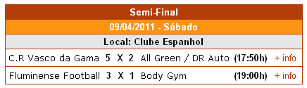 Simultaneamente ao Campeonato Estadual de Futebol Society, uma outra competição da modalidade está sendo disputada. É a Supercopa, que reúne 64 clubes e tem fórmula semelhante à da Copa do Brasil do futebol. Esse torneio já está nas semifinais, e o Vasco saiu na frente no jogo de ida contra o All Green/DR Auto: 5 a 2. Está pintando uma decisão entre o Gigante da Colina e o Fluminense.