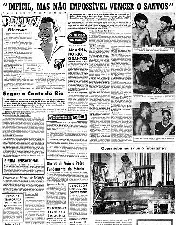 Os jogadores do Vasco estão concentrados desde ontem para o sensacional clássico que, amanhã, no Maracanã, marcará a última apresentação do Santos êste ano diante da torcida carioca. À véspera da partida com Pelé e companhia, Belini, na qualidade de capitão do quadro de São Januário, disse: "Acredito firmemente que não se repetirá o desastre do Pacaembu, pois, se não vamos jogar recuados, estamos mais cautelosos que daquela vez. O pior são as vaias da torcida, abalando a cada dia o moral da equipe."