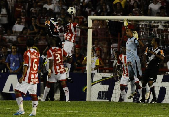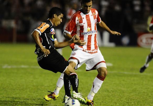 Porém, o Vasco era mais perigoso e conseguiu chegar ao primeiro gol aos 32. Diego Souza bateu escanteio pela esquerda, e Dedé subiu mais do que todo mundo para movimentar o placar e silenciar parte do estádio nos Aflitos. Oito minutos depois, Fellipe Bastos quase aumentou para a equipe carioca. O volante arriscou de fora da área e a bola explodiu na trave esquerda de Douglas. Impaciente, a torcida do Náutico começou a vaiar a equipe.