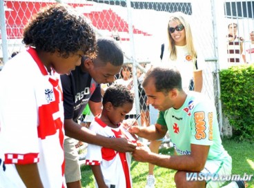 - É a primeira vez que venho acompanhar um treino do Vasco e estou muito feliz. Conheci o elenco inteiro e todos são muitos legais. Tirei foto com todos os jogadores, conversei com eles e com certeza, esta manhã será inesquecível para mim – disse o vascaíno Douglas.