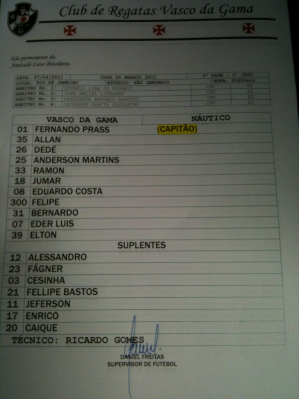 Fonte: Twitter do assessor de imprensa do Vasco Vinícius Gonçalves