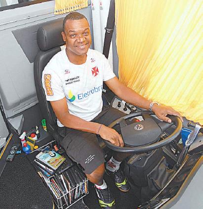 “Sou vascaíno, gosto do que faço, gosto de dirigir. Acordo 4h40 (mora na Pavuna), venho de metrô, eu mesmo lavo o ônibus, por dentro e por fora. Cuido do ônibus como se fosse meu”, revela Edson, que é muito mais conhecido como Pretinho. “Pode ser loura de olhos azuis, não importa, para mim é pretinho”, brinca o motorista do Gigante da Colina.
