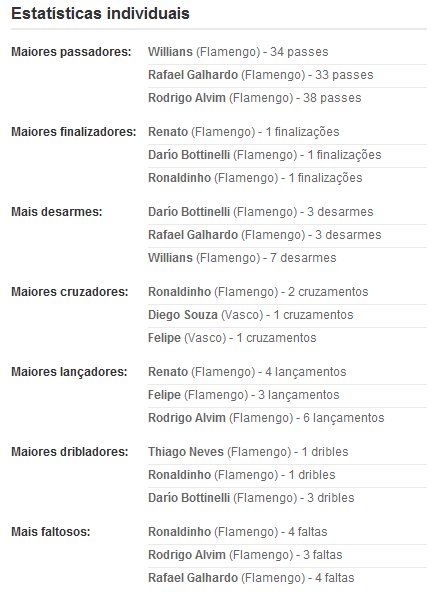 ![]() Estatisticas de Vasco 0x0 Flamengo | ![]() Estatisticas de Vasco 0x0 Flamengo | ![]() Estatisticas de Vasco 0x0 Flamengo |