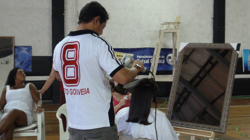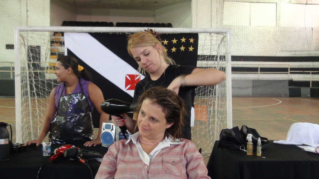 O dia das mães já começou para as funcionárias do Vasco. Nesta sexta-feira (06/05), as vascaínas do clube tiveram um "Dia da Beleza", com atendimento de escova, maquiagem, design de sombrancelha, corte e hidratação, tudo sob o comando da equipe do cabeleleiro Beto Gouveia, do Fashion Rio.