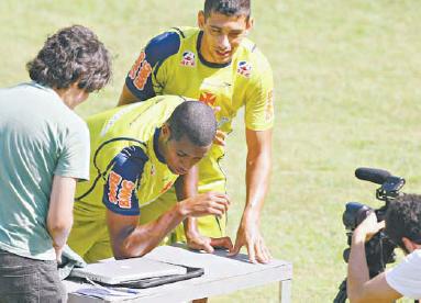 Dedé e Diego Souza participaram ontem das filmagens da propaganda da Penalty, empresa de material esportivo do Vasco, que vai divulgar o terceiro uniforme do clube. Com a mão aberta, eles repetiam o gesto da camisa, que homenageia a luta do time de São Januário contra o racismo e a exclusão no futebol. Os ‘camisas negras’, apelido do time que jogava todo de preto, foram bicampeões cariocas em 1923 e 1924.