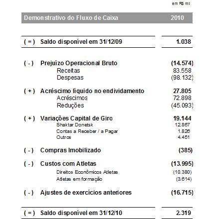 Ainda que as demonstrações financeiras publicadas não contenham os detalhamentos necessários nos relatórios ou nas notas explicativas, não apresentem algumas importantes informações, não indiquem a natureza de contas relevantes que possibilitariam ao sócio conhecer e entender, com clareza, a situação atual, como já ocorre nos demais grandes clubes brasileiros, os números apresentados não deixam dúvida de que o resultado de 2010 agrava ainda mais o endividamento do clube, a exemplo do que ocorreu nos anos anteriores, seja sob a gestão da atual administração, seja sob a gestão das administrações anteriores.