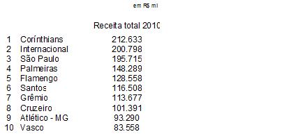 Além dessa constatação, não foi possível uma análise mais detalhada das receitas, já que nem a demonstração de resultados nem as notas explicativas detalharam as contas de receitas com futebol profissional por natureza, deixando de discriminar receitas de bilheteria, de direitos de transmissão televisiva, de patrocínios e repasses de direitos federativos de atletas.