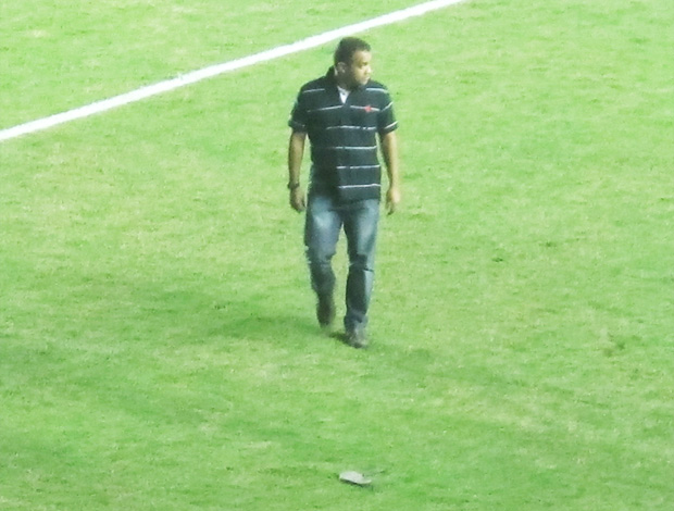 Funcionário se encaminha para retirar chinelo atirado no campo