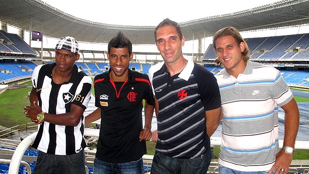 A bola só rola oficialmente no próximo sábado. Mas no campo das palavras, a disputa já começou. A convite do quadro 'Papo Carioca', do programa Globo Esporte, da TV Globo, quatro craques dos grandes times do Rio se reuniram para um descontraído bate-papo no Engenhão. Maicosuel (Botafogo), Leonardo Moura (Flamengo), Fernando Prass (Vasco) e Rafael Moura (Fluminense) falaram sobre a expectativa para o início do Campeonato Brasileiro e fizeram suas apostas. Sem muitas novidades, no entanto.