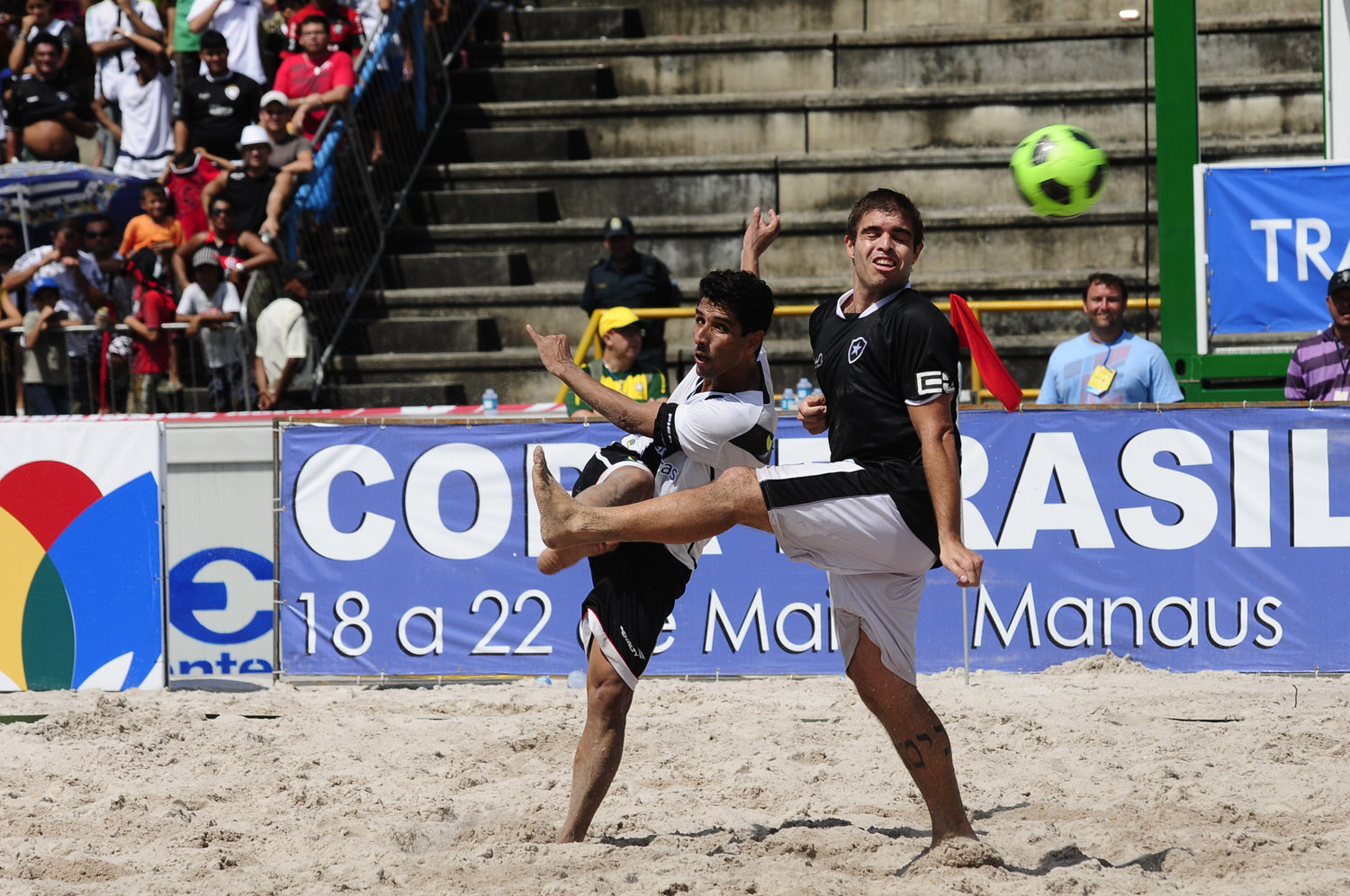 Diante de 22 mil pessoas na Arena do Centro Cultural Povos da Amazônia, em Manaus, o Botafogo atropelou o Vasco, campeão do Mundialito em março, por 8 a 3 e conquistou o título da primeira Copa Brasil de Clubes de Futebol de Areia, neste domingo, em Manaus. Juninho brilhou com três gols, Bruno Malias marcou dois, Sidney, Rafinha e Betinho completaram a goleada alvinegra. Gil, Osmar e Jorginho diminuíram para o time da Colina.