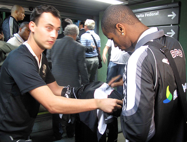 Logo após o desembarque, Dedé autografa camisa do Vasco