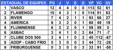 O confronto entre Flamengo e River terminou em 20 x 20, fazendo com que as duas equipes se distanciem um pouco mais da liderança. A equipe rubro-negra continua invicta, mas com o empate caiu para o 2º lugar, enquanto o River segue na 3ª posição.