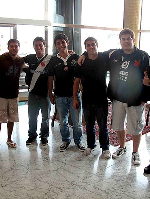 De cara eles encontraram mais três vascaínos e ainda esbarraram com Felipe na recepção. O contato foi rápido, mas suficiente para reafirmar ao apoiador a confiança na classificação para a final e passar todo o apoio. A empolgação de todos era nítida, mas principalmente dos irmãos e primos que viajavam juntos para ver o clube de coração. Segundo Gabriel, a paixão pelo Vasco vem de berço e começou com o avô Manoel Souza.