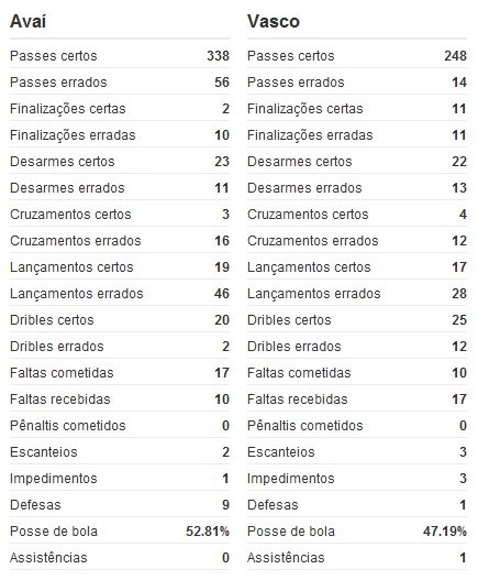 ![]() Estatísticas de Avaí 0x2 Vasco | ![]() Estatísticas de Avaí 0x2 Vasco | ![]() Estatísticas de Avaí 0x2 Vasco |