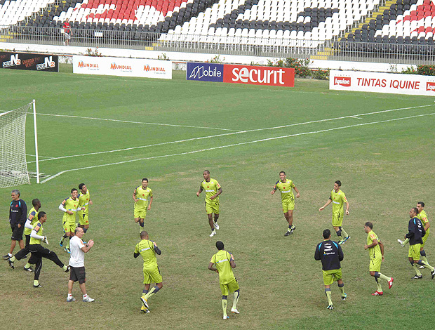 Nem mesmo o frio ou a chuva atrapalharam a preparação do Vasco para a final da Copa do Brasil, na manhã deste domingo. Mostrando muito bom humor e descontração, o grupo realizou uma atividade técnica. Sob olhares atentos do auxiliar técnico Gaúcho, o treino priorizou a movimentação e os toques de bola curtos. Antes disso, o grupo fez um leve treinamento físico. Durante o aquecimento, muitas risadas em um exercício que pareciam passos de dança.