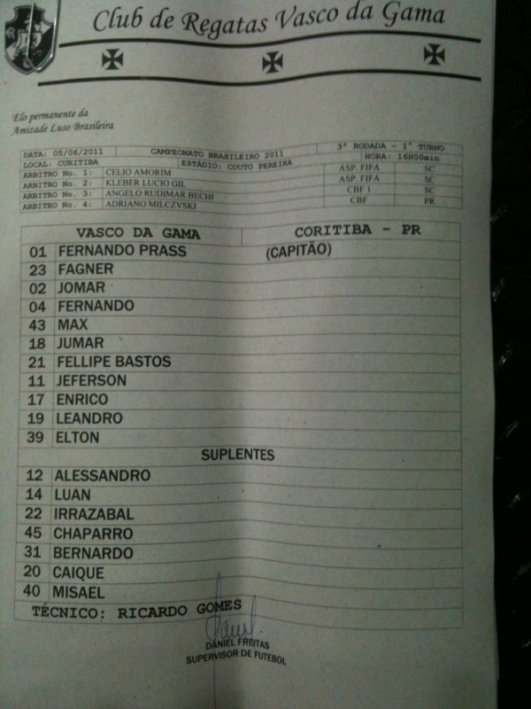 Fonte: Twitter do assessor de imprensa do Vasco Vinícius Gonçalves