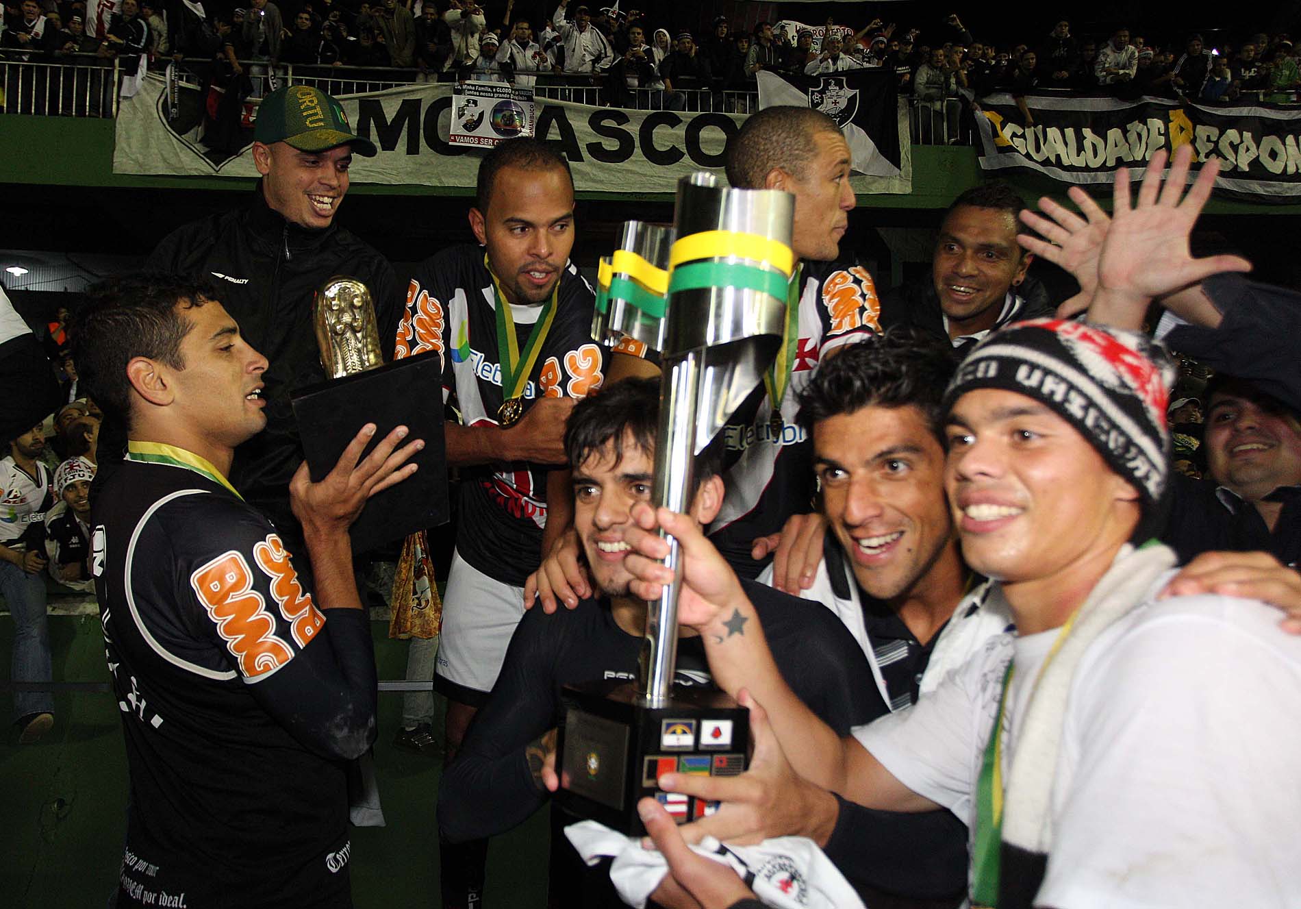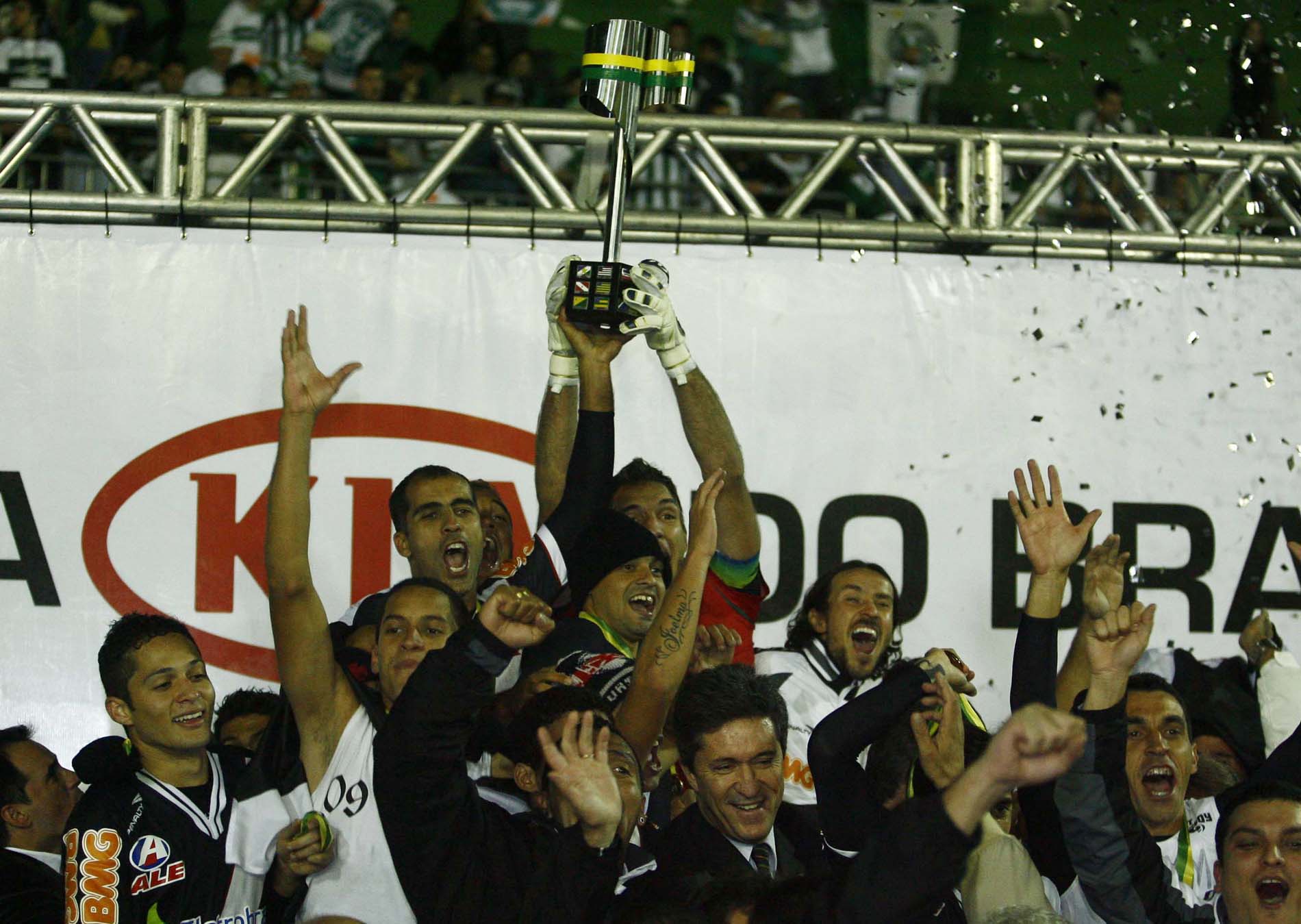 Foi uma vibração das mais intensas. O Coritiba pressionava muito, ainda que mais no coração do que na estratégia. Já fora de campo, substituídos, Felipe e Diego Souza rezavam encolhidos, como autênticos torcedores, juntando-se aos quatro mil vascaínos no estádio que explodiram de alegria. O técnico Ricardo Gomes, um dos responsáveis pela recuperação da equipe no início da temporada, se sentia, enfim, recompensado. Roberto Dinamite, ídolo agora presidente, falava do seu primeiro título na nova função. Fernando Prass, goleiro que sofreu a pressão e capitão da equipe, levantava a taça, antes da volta olímpica consagradora. Agora, é só pensar em festa.