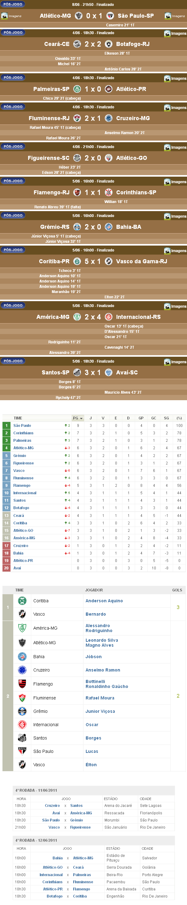 Fonte: NETVASCO (texto), Futebol Interior (resultados, autores dos gols), UOL (classificação, artilharia, próximos jogos)