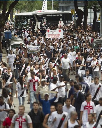 11:25 - Integrantes da Cruzada Vascaína acompanharam final em bar da Zona Sul
