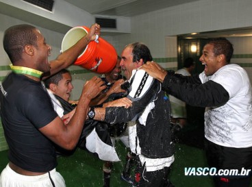 Quando o árbitro Salvio Spínola apitou o final do jogo, a imensa torcida vascaína soltava o grito de “É CAMPEÃO” da garganta. Após conquistar a Copa do Brasil, os jogadores vascaínos e toda a comissão técnica festejaram muito no gramado do Couto Pereira. E a comemoração continuou no vestiário da equipe vascaína. Se você quer saber como foi toda essa festa, confira as fotos dos bastidores da conquista: Bastidores dos Campeões