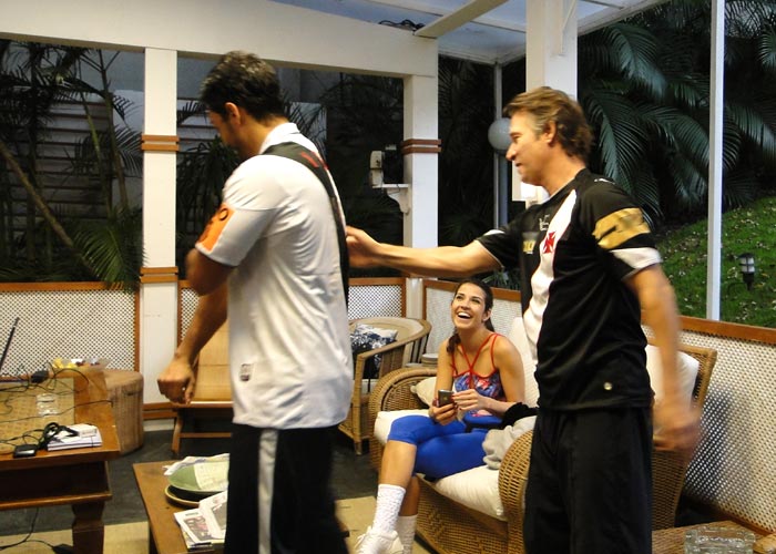 Raphael Viana não é o único torcedor do Vasco da Gama no Dança dos Famosos. Ao ver Nelson Freitas chegando com o uniforme do time, Viana se empolgou: “Vou te dar um super abraço!”. Animados, os dois comentaram sobre o jogo e como foi a emoção de cada um.