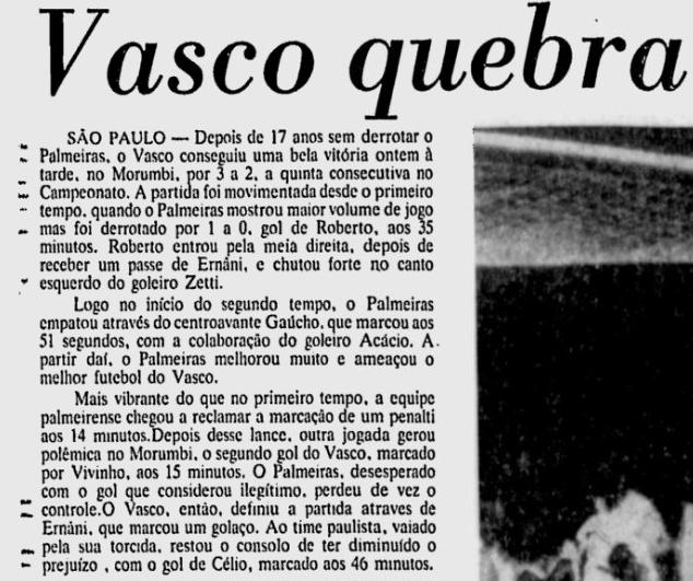Reportagem do Jornal do Brasil sobre a 5ª vitória seguida do Vasco em 1988