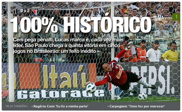 GloboEsporte.com destaca o suposto ineditismo da campanha 100% do São Paulo nos 5 primeiros jogos do Brasileirão. O Vasco, porém, fez o mesmo em 1988