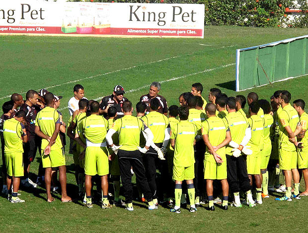 Ricardo Gomes conversa com os jogadores antes do treino em São Januário