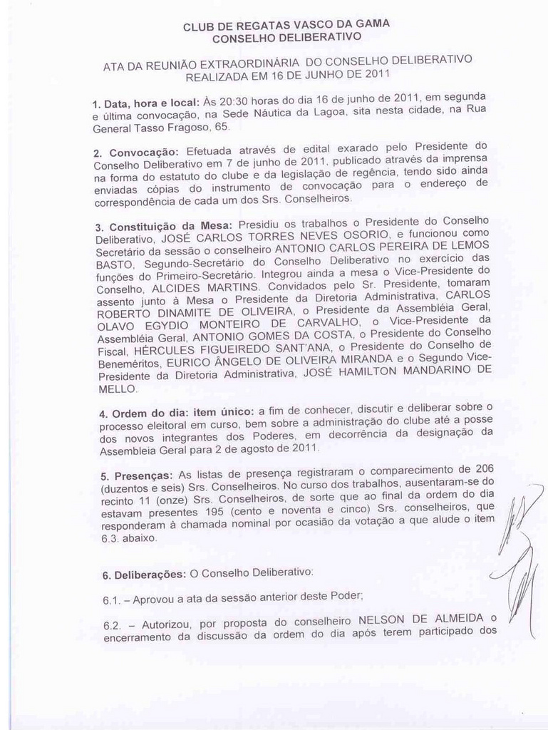 Confira ata da reunião do Conselho Deliberativo do dia 16/06