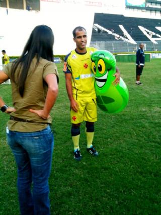 A popularidade do João Sorrisão parece estar em alta em São Januário e no Beira-Rio. Mais um vascaíno vai levar o boneco para casa. Agora foi a vez do meia Felipe, que anotou o único gol do Vasco sobre o Atlético-GO (1 a 0) e carimbou o seu. Já no Internacional, o zagueiro Bolívar balançou a rede no 4 a 1 sobre o Figueirense e vai levar mais um Sorrisão para Porto Alegre. No mesmo jogo, Wellington Nem fez o gol de honra dos catarinenses e, de quebra, comemorou com a dancinha.