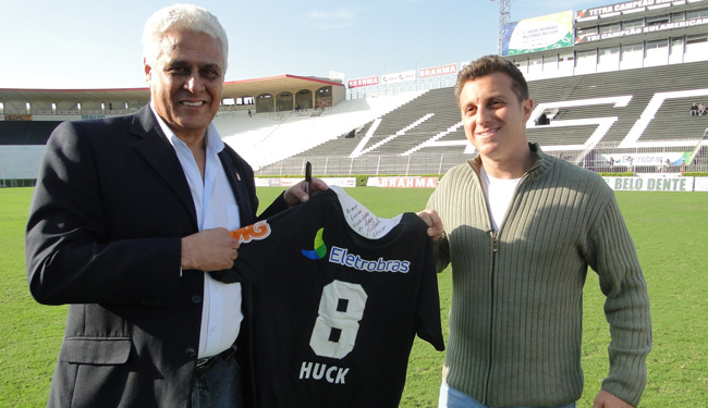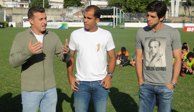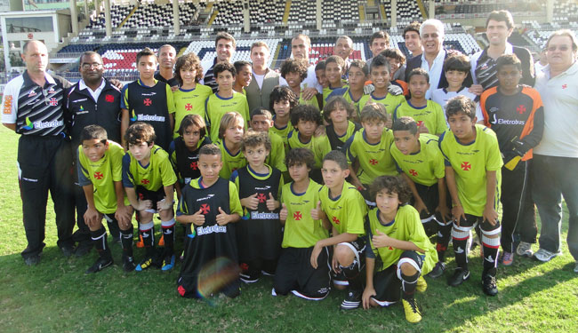 Depois de visitar o Ninho do Urubu para gravar o quadro Peneira, do Caldeirão, com Ronaldinho Gaúcho, Luciano Huck vai a São Januário tentar realizar o sonho de mais um jogador mirim. O apresentador levou o menino Mateus, de 11 anos, morador do Morro do Borel, para conhecer o estádio do Vasco da Gama, admirar os craques do time, como Juninho Pernambucano e Felipe, e fazer um teste no clube carioca. Corintiano, Huck também ganhou na ocasião uma camisa de presente com seu nome de Roberto Dinamite. Confira em breve a matéria completa no Caldeirão!